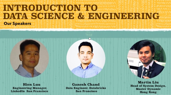 Formal announcement and launch of this meetup group .Real time image and video analysis using AI .Introduction to Machine Learning, Industry Trends and Data Science Career Path .Introduction to Data Engineering, Data Lake, Data Warehouse, Industry Trends and Career Path .Apache Spark 3.0 Overiew